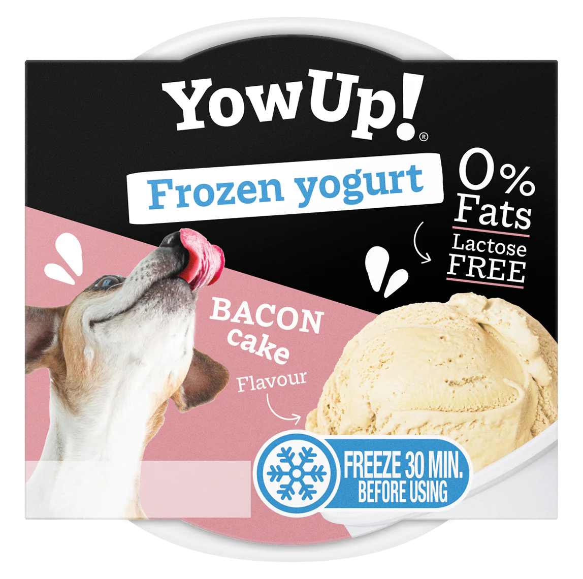YowUp! Frozen Yoghurt ha una formula leggermente più cremosa rispetto allo yogurt YowUp! nelle confezioni a spremere, in modo che dopo 30 minuti di congelamento abbia la stessa consistenza del gelato cremoso. Il Frozen Yoghurt è disponibile in 3 deliziosi gusti, ovvero torta al bacon, tartare di salmone e pollo & mela.